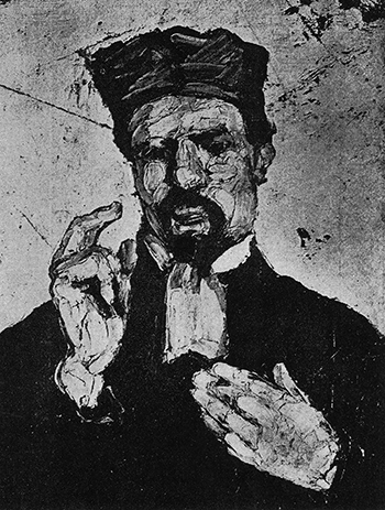 一貫した思考で構造的な奥行きある絵画の世界を切り開いたセザンヌではあるが、しかし初めは、むしろそれとは逆な世界から始まっているように見える。ドラクロアを尊敬していたといっているように、初期はきわめて情念的でドラマチックな作品を描いていた。たとえば二十八才のときに描いた「誘惑」(1867)という作品などが、それを示している。そしてまた、特徴的なのはきわめて厚塗りで大胆な一連の作品を描いていることだ。「弁護士」(1866)や「ドミニク伯父」「自画像」(1865~66)などがそれである。パレットナイフを使って絵の具を厚く盛り上げた荒々しい作品だ。何かに触発されたのか、あるいは内からの衝動によって一気に描かれたのか、それはわからない。これらの作品は、後年の…普通セザンヌとして知られている作品とは、まったくおもむきも異にしている。とはいえ、気質においてはやはり共通の何かを感じるような気もする。しかしこのような世界から、あの秩序だった世界へ……ペリュシも「彼の描いた絵ほどに、静かでよく秩序づけられ、至上の均衡を保っている絵は他にはない」と言っているような、あの構築的な世界はいったい何によって、どんな心的変化によって制作されていったのであろう。