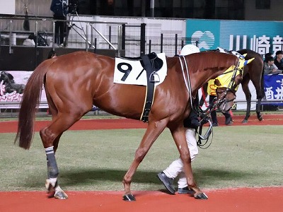 笹川騎手「スタートで遅れたあと勝ち馬をマークして出していったため、ハミを噛んでしまいました。大外枠も厳しく外を回らされてしまいました。外枠からでも勝ち切るにはもう少しパワーがほしいですが、いい馬ですのでこのクラスはすぐに勝てるでしょう」 山崎尋美調教師「引っ掛かったうえに外を回る競馬では、勝つのは難しかったです。オッズ(1.2倍)がしめす通り今日は道営から転入してきた勝ち馬の力が違いすぎました。少し癖のある馬なので町田騎手(1着馬に騎乗)からの乗替りも痛かったです。次は正月の川崎開催での出走を予定しています」 |