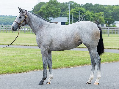 クラブ募集時の馬体写真 芦毛でかわいい子と評判でした。イイ感じに育っています! |