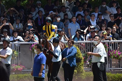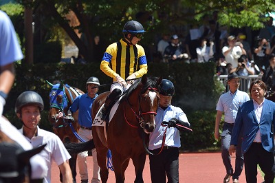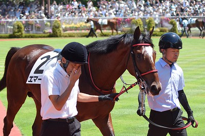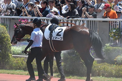 | 気合い乗りもよく、堂々とパドックを周回します。 |