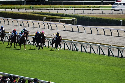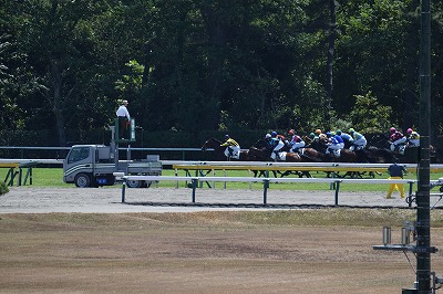 | スタートはタイミングバッチリでポンと出ました。 | そのまま逃げてハナを切ります。 | 掛かることもなく、良い感じでレースを進めます。 |